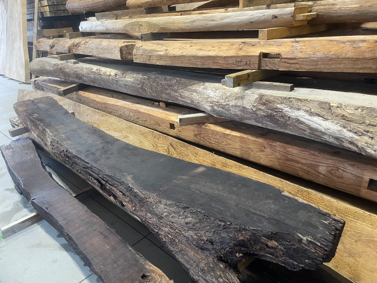 古材の方も着々と増えております。一点物も多数揃い、どれもぜひ一度ご覧いただきたいものばかりです。